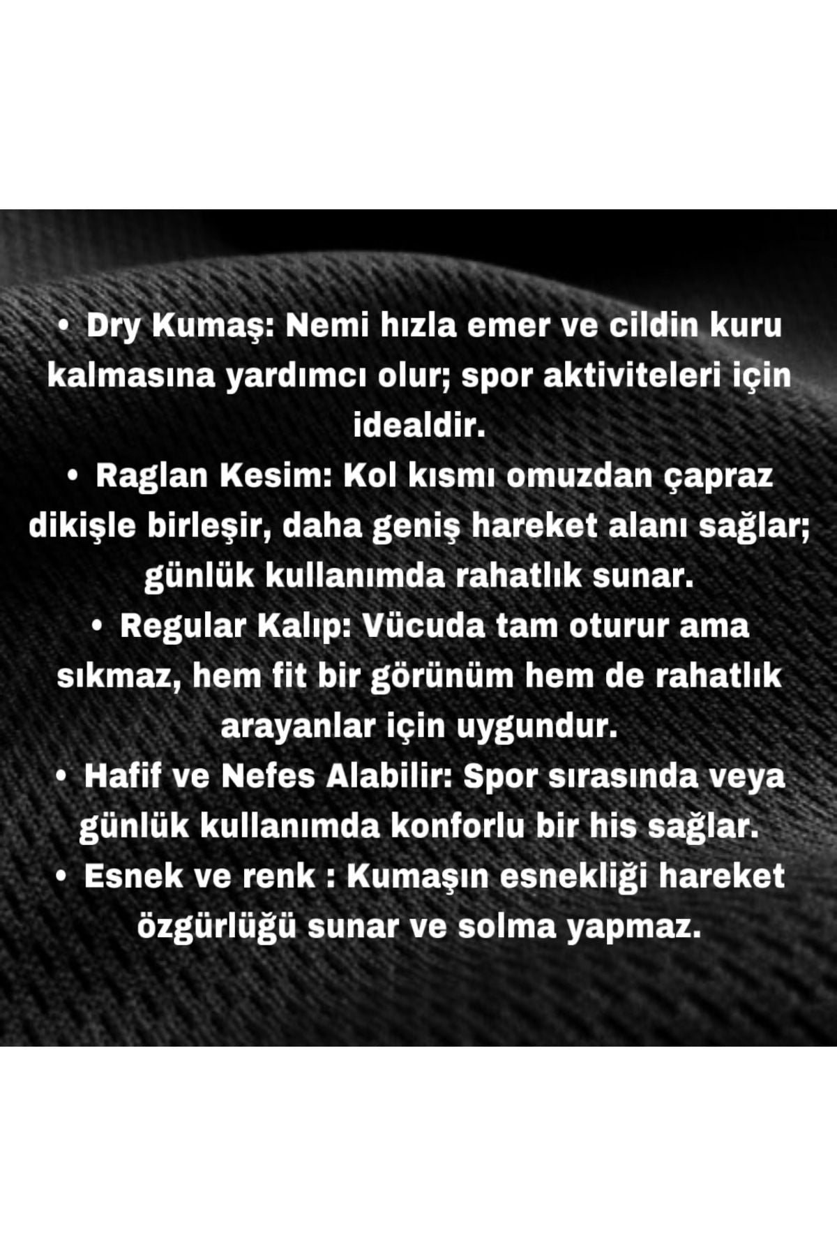 Konforu ve şıklığı bir araya getiren bu tişört, dry fit kumaş yapısıyla nemi hızla emerek hızlı kuruma sağlar, gün boyu kuru ve ferah kalmanıza yardımcı olur.; Spor ya da günlük kullanıma uygun olan raglan kesim kollar, hareket özgürlüğünü artırırken stilinize modern bir dokunuş katıyor.; Regular kalıbı sayesinde vücudunuza tam oturur, ancak rahatlığınızdan ödün vermez.; Hafif, nefes alabilir, esnek ve dayanıklı bu tişörtle hem şıklığı hem de konforu bir arada yaşayın!